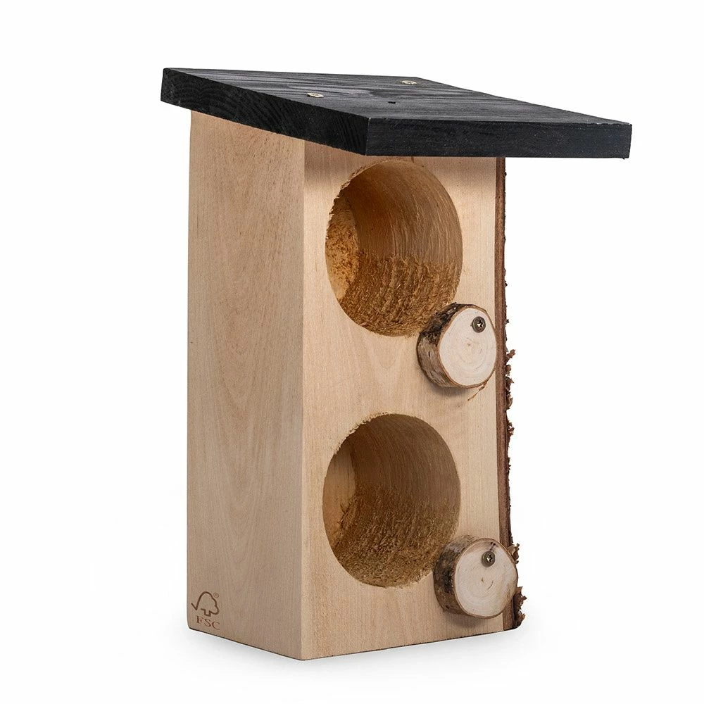 Dieser doppelte Erdnussbutter-Halter ist aus einem Birkenstamm gefertigt. An der Seite ist die Rinde noch sichtbar. Das Dach aus Kiefernholz ist mit einem schwarzen Lack auf Naturbasis behandelt Dadurch hat der Halter eine stimmige, natürliche Ausstrahlung In den Erdnussbutterglas-Halter passen zwei Gläser Gartenvögel-Erdnussbutter. Gesichert wird der Topf mit dem runden Holzriegel an der Vorderseite. Auf diese Weise fällt das Glas nicht heraus.