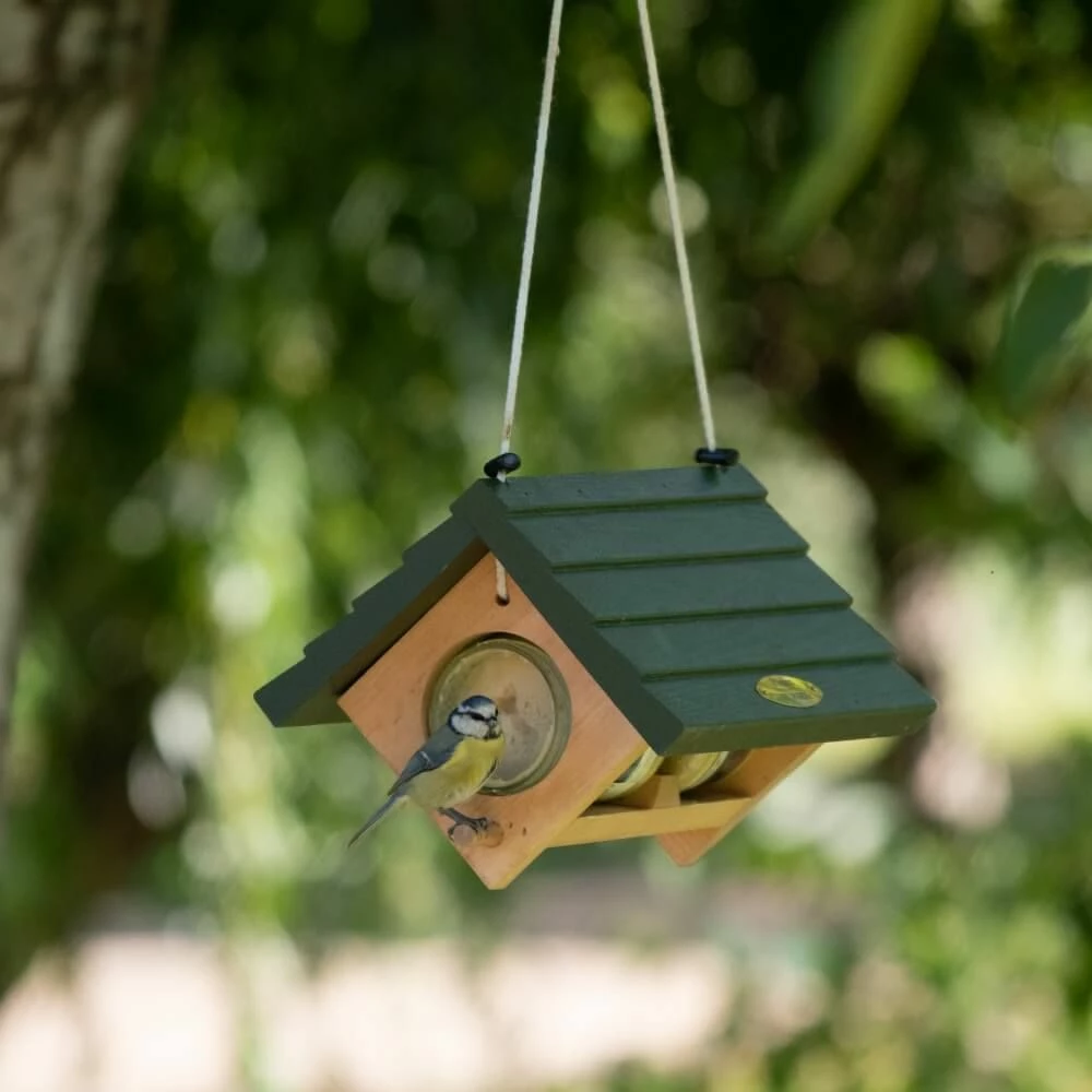 Mit dem Erdnussbutterglashalter „Lifford“ können Sie problemlos zwei Gläser Gartenvögel-Erdnussbutter gleichzeitig anbieten. Schieben Sie die Gartenvögel-Erdnussbutter durch die Innenseite in die runde Öffnung. Hängen Sie den Erdnussbutterglashalter an einen Baum oder ein Pfahlsystem und freuen Sie sich auf die Vögel, die von diesem kalorienreichen Futter angelockt werden.