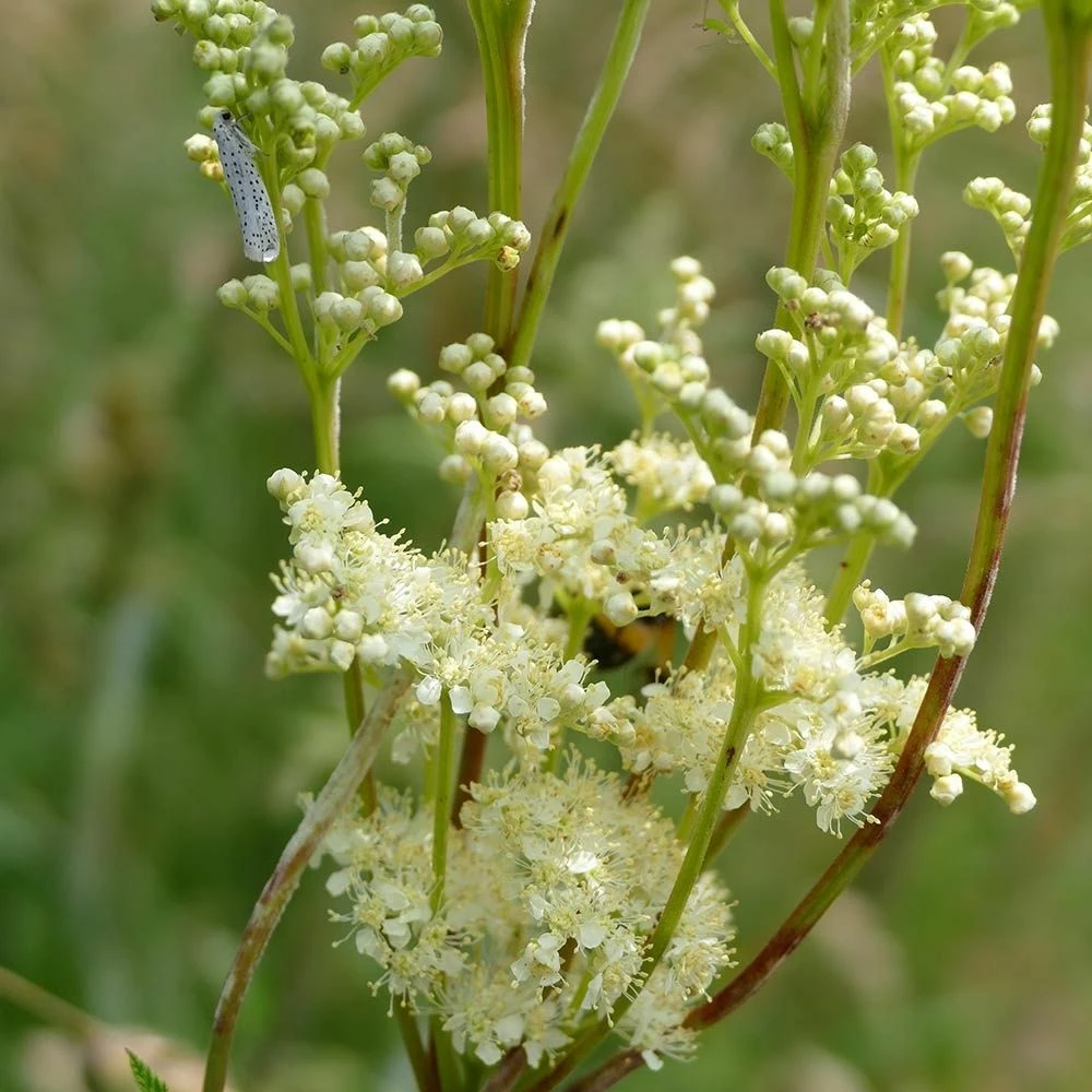 Das Echte Mädesüß blüht in fast schon flauschig wirkenden Büscheln aus kleinen cremeweißen Blüten mit auffälligen, langen Staubgefäßen. Es wächst in kühlen bis feuchten, humusreichen Böden. Am liebsten steht das Mädesüß in der Sonne oder im Halbschatten. Entfernen Sie nach der Blüte die verblühten Stängel. So haben Sie am längsten Freude an der Blütenpracht.