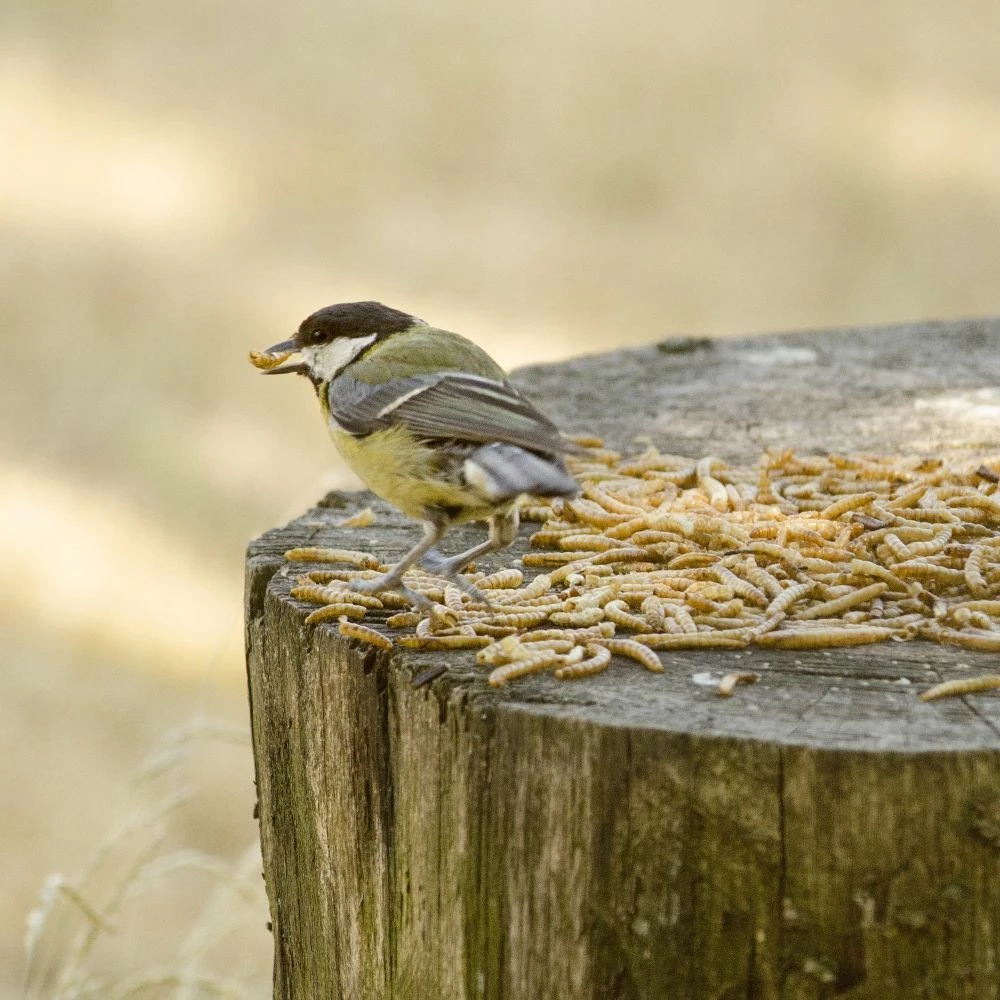 Die getrockneten Mehlwürmer können anderem Vogelfutter zugesetzt werden und damit für ein Extra an Proteinen sorgen. Tipp: Die Würmer können in ein wenig Wasser gelegt werden, sodass sie weich werden – so mögen die Vögel es am liebsten.