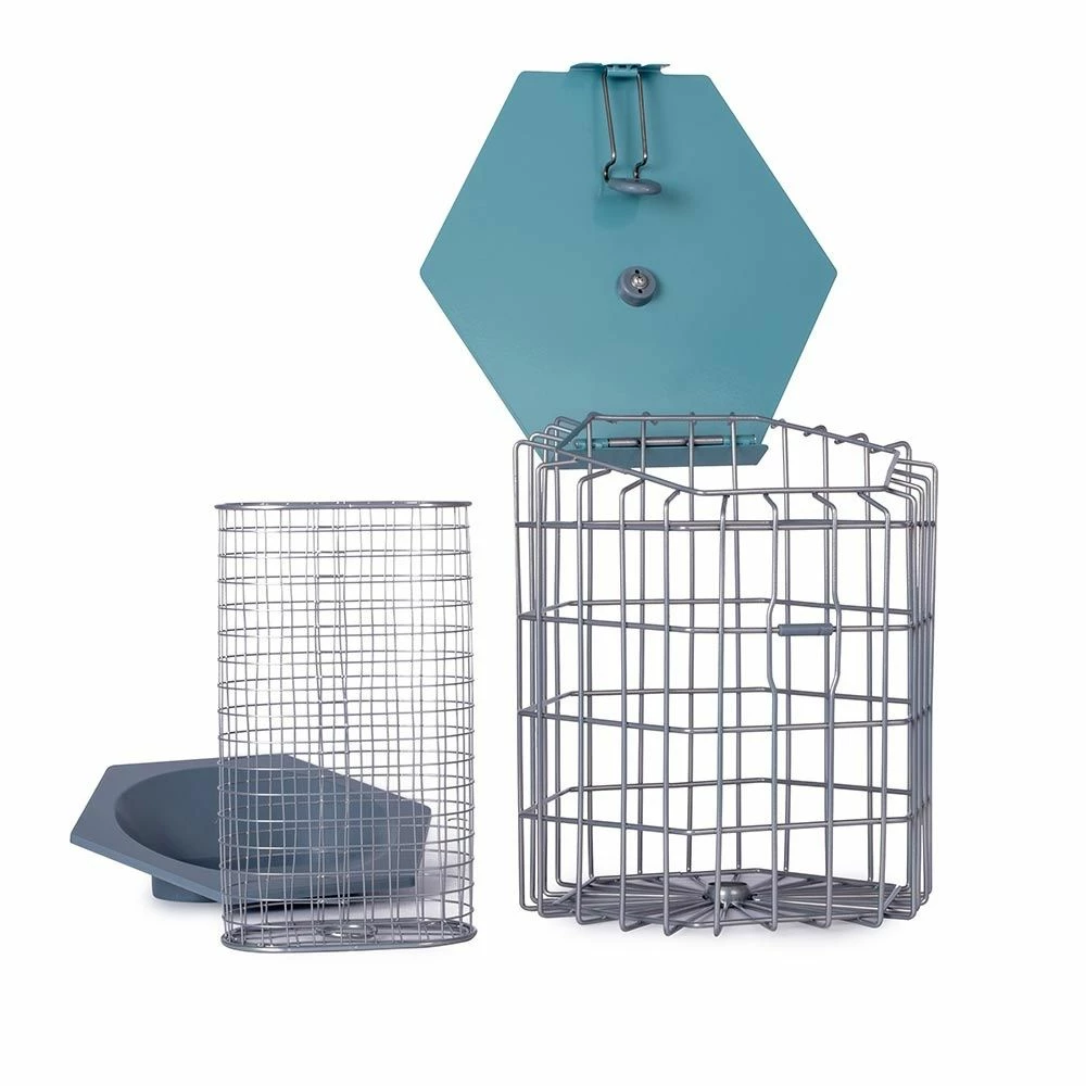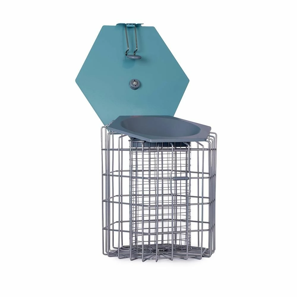 Der Energieblock- und Meisenknödel-Halter „Hexihaus“ ist ein attraktives, modernes Futterhaus in einem hellen Blau. Es passt perfekt in jede Umgebung. Außerdem ist es sehr gebrauchsfreundlich. Einfach den Deckel öffnen und befüllen. Der Schutzkäfig bietet zudem nur kleinen Vögeln Platz und hält auch Fressfeinde auf Abstand. So können Ihre Gartenvögel ganz entspannt fressen.
