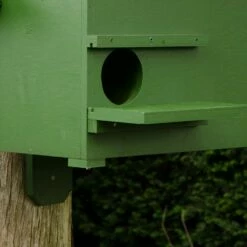 Der Fledermauskasten Coucy hat einen angepassten Eingang, der mit einer Reliefoberfläche ausgestattet ist, wodurch den Fledermäusen einen festen Halt beim Hineinklettern geboten wird. Der schwarze Außenanstrich gewährleistet Schutz vor Nässe und sorgt für ein angemessenes Klima im Kasten.