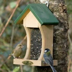 Dieses Wandfutterhaus eignet sich zum Aufhängen an einer Mauer oder einem Zaun. Das nach vorne aufklappbare Dach macht das Reinigen und Nachfüllen besonders einfach. Zwischen dem Futtertisch und dem transparenten Zylinder aus Plexiglas bleibt ein Zwischenraum, der eine stets gleichbleibende Futterration garantiert.