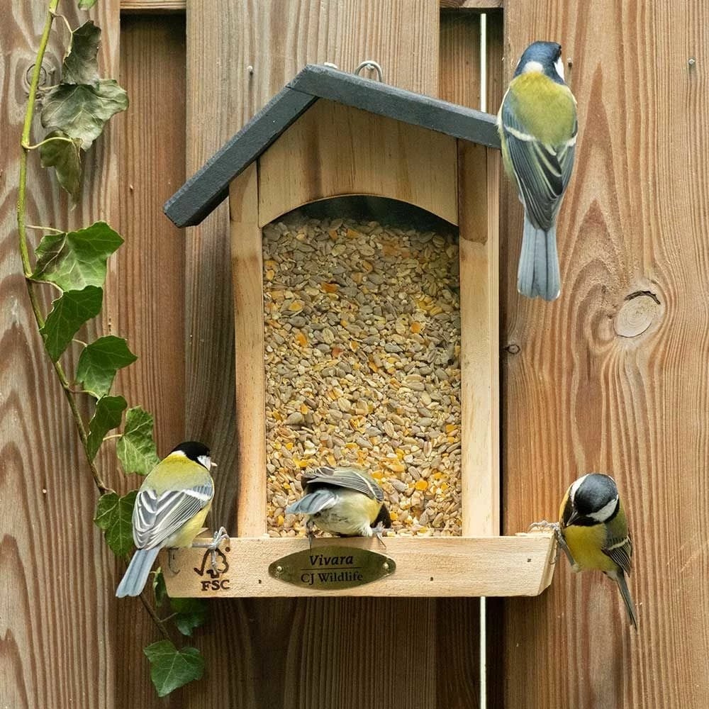Das Futterhaus „Houston“ kann problemlos an Mauern, Bäumen oder Lattenzäunen aufgehängt werden. Hierzu bfindet sich an der Rückseite ein Metallhaken. Das Befüllen ist ebenfalls einfach, denn das Dach lässt sich hierzu öffnen.
