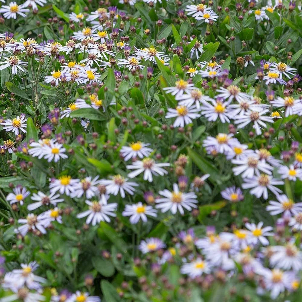Die Garten-Schönaster ‚Nana Blue‘ trägt von Juni bis Ende September zartblaue Blüten mit gelben Herzen. Die Blüten ähneln denen der Aster. Die Blätter sind grün. Mit einer Wuchshöhe von ca. 30 cm ist diese ‚Nana Blue‘ eine niedrig wachsende Sorte. Sie bevorzugt einen sonnigen Platz in eher trockenem Gartenboden.