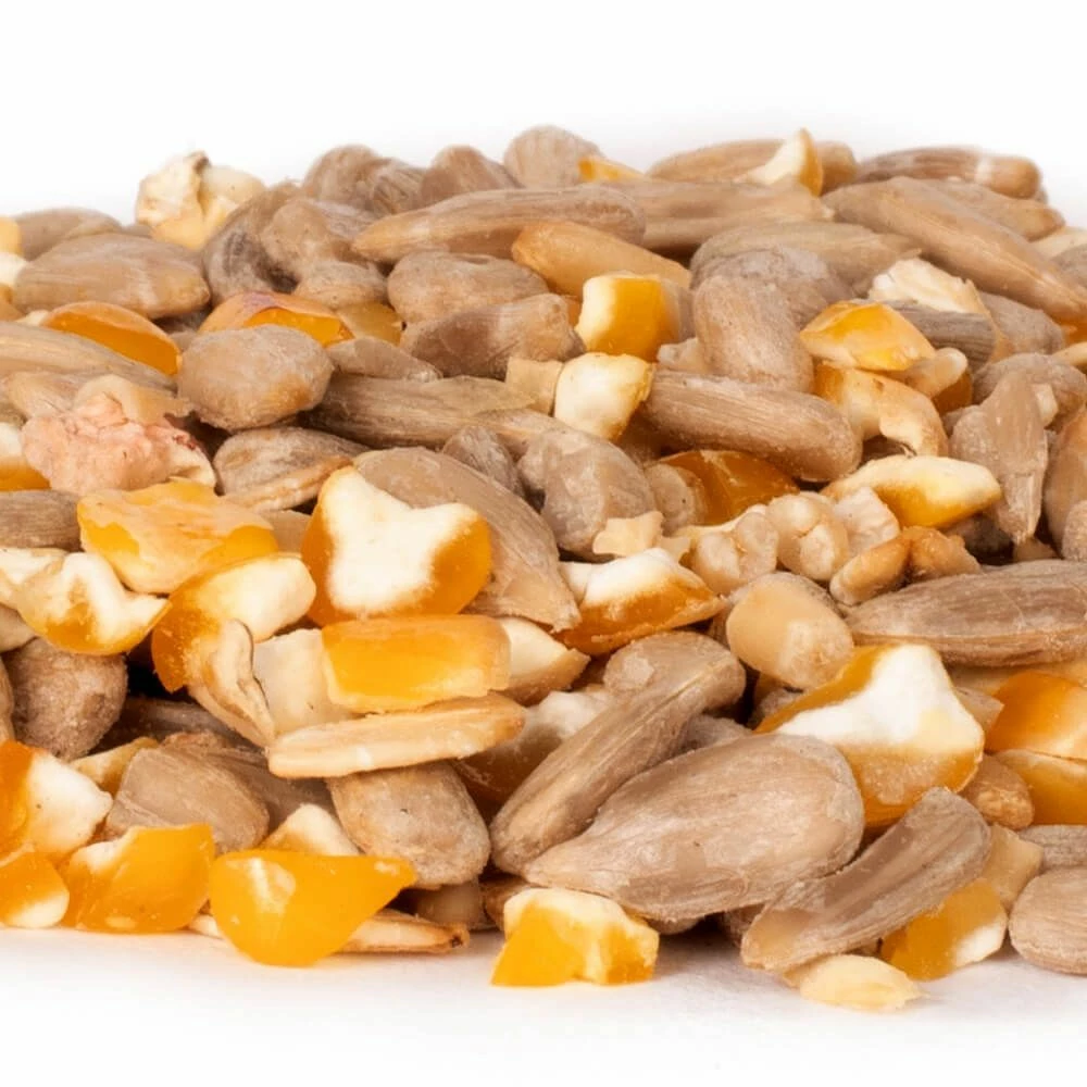 Die „Green+ Pure“-Futtermischung enthält ausschliesslich biologische Zutaten. Biologisch angebaute Produkte sind rein und von höchster Qualität. Dieses Wildvogelfutter enthält, neben anderen Zutaten, viele energiereiche, geschälte Sonnenblumenkerne, die bei vielen, häufig vorkommenden Gartenvogelarten sehr beliebt sind. Bei dieser Futtermischung wurden alle Schalen der Saat entfernt, sodass die Futterstelle sauber bleibt. Diese Futtermischung ist für die Fütterung auf Futtertischen, in Futterschalen und auf dem Boden geeignet.