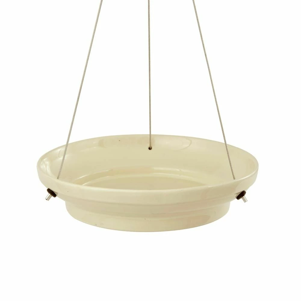 Die hängende Wasserschale „Vesi” in creme ist eine ideale Möglichkeit, Vögeln Wasser anzubieten. Sie ist aus Keramik gefertigt und mit Metallschnüren zum Aufhängen ausgestattet. So lässt sie sich leicht an einen Baum oder einen Haken hängen. Bei lang anhaltendem, strengem Frost ist es ratsam, das Wasser in unseren Wasserschalen nicht einfrieren zu lassen. Eis dehnt sich aus und kann die Schüssel zerstören.