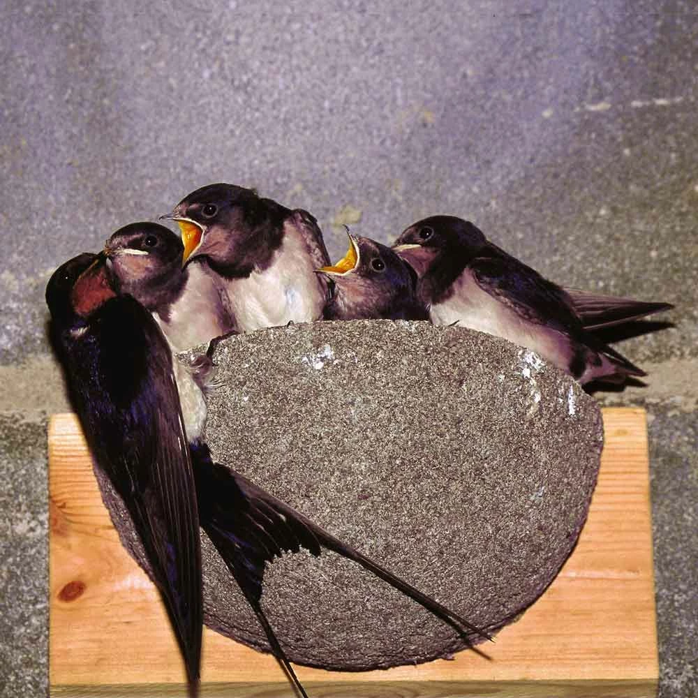Dieser Kolonienbrüter baut sein Nest bevorzugt in ländlicher Umgebung. Die Rauchschwalbe braucht Scheunen oder Ställe mit ständigen unbeeinträchtigtem Zugang während der Brutsaison. Diese Flugakrobaten benötigen nur ein spaltweit geöffnetes Fenster, um ungehindert ein- und ausfliegen zu können.