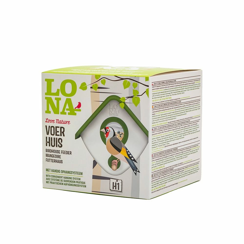 LONA H1 ist eine attraktive und langlebige Futterstation in der Form eines Häuschens. Darin kannst du deinen kleinen Gartenvögeln Streufutter, Meisenknödel oder auch LONA-Erdnussbutter anbieten. Einfach am Fallrohr, Baum, Zaun oder an der Mauer befestigen.
