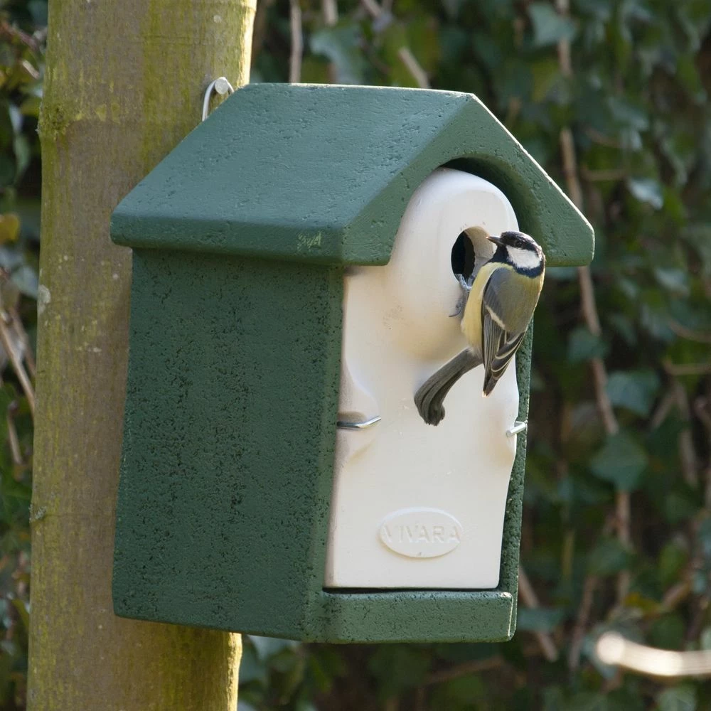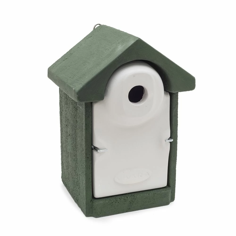 Dieser Nistkasten hat eine Einflugöffnung von 32 mm und eignet sich für u.a. Meisen, Sperlinge und Kleiber. Der Kasten ist mit einem Marderschutz ausgestattet und besteht aus WoodStone bzw. Holzbeton, einer speziellen Mischung aus Beton und Holzfasern, welche besonders isoliert und atmungsaktiv ist. In den Wintermonaten schützt das Material gegen Kälte, im Sommer verhindert es Überhitzung. Die konstante Temperatur im Kasten erhöht zudem die Überlebenschancen der Jungvögel erheblich.