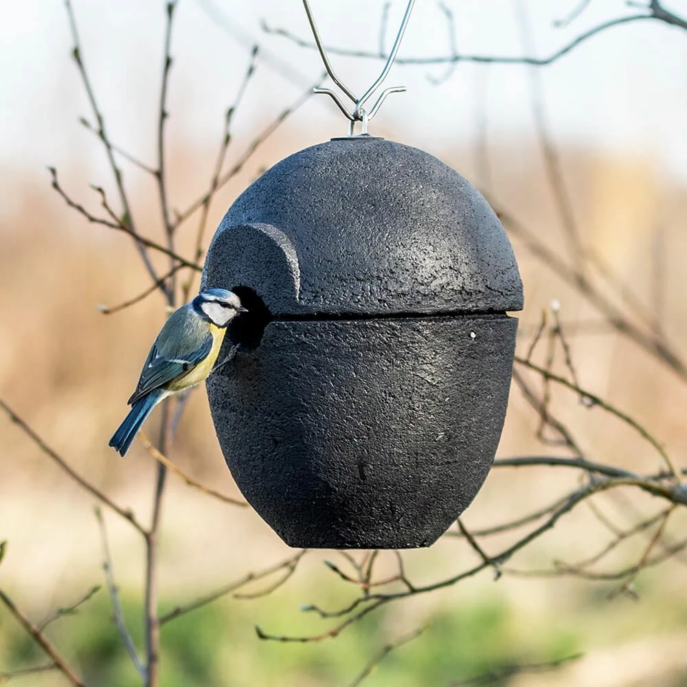 Der Nistkasten „Malaga“ aus Holzbeton ahmt nicht nur die natürliche Nisthöhle perfekt nach, er ist auch besonders ansprechend gestaltet. Der Nistkasten besteht aus zwei Teilen und lässt sich problemlos zusammensetzen. Mit dem mitgelieferten stabilen Bügel können Sie ihn an einem Ast oder an einer anderen Stelle aufhängen.